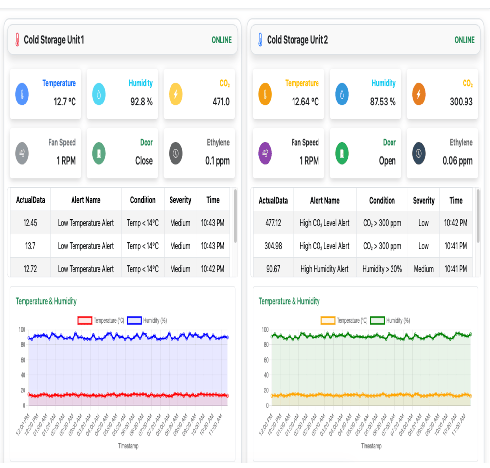 ๐ Deployed in Kolhapur & Pune, achieving 30% reduction in spoilage and 20% energy savings.