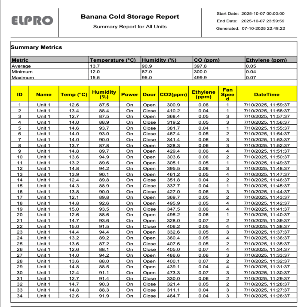 The Smart Banana Cold Storage system ensures optimal ripening conditions through real-time sensor integration and AI-based process control.